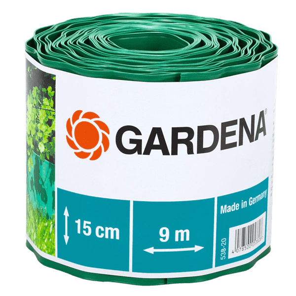 El cercadillo de césped GARDENA está fabricado en plástico de alta calidad y consigue bordes de césped perfectamente delimitados. Gracias al perfecto cercado se evita el crecimiento y la propagación de las raíces. El rollo mide 9 metros y 15 cm de altura.